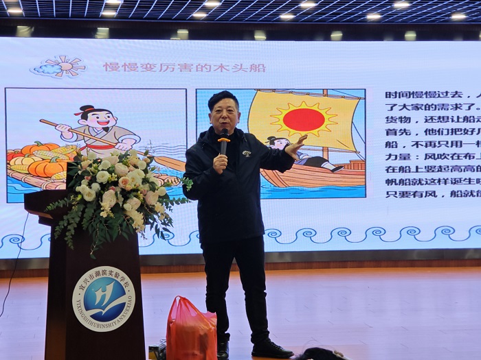 来源:本站 作者:无锡市海钰船舶科技有限公司 发布时间:2026-03-26 11:08:29 浏览量:50为深入落实宜兴市小学科学“四精四有”主题研讨要求,打破课堂与生活的壁垒,让科学知识走出课本、贴近实践,近日,宜兴市湖滨实验小学组织开展特色研学活动,特邀无锡海钰船舶有限公司领导人汤总莅临现场,为孩子们带来了一场兼具知识性与趣味性的专题分享,让孩子们在聆听中解锁海洋奥秘,在感悟中点燃探索梦想。